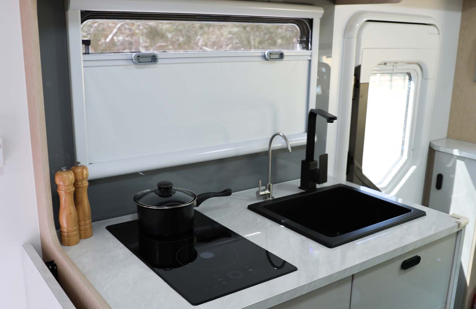 Featuring full off-grid capabilities, the NAM8 is powered by a scalable 48V 4kW EcoFlow system–expandable to 15kW–enjoying the very latest camping appointments like a motorised awning and an internal induction cooktop supported by 600W in rooftop solar.